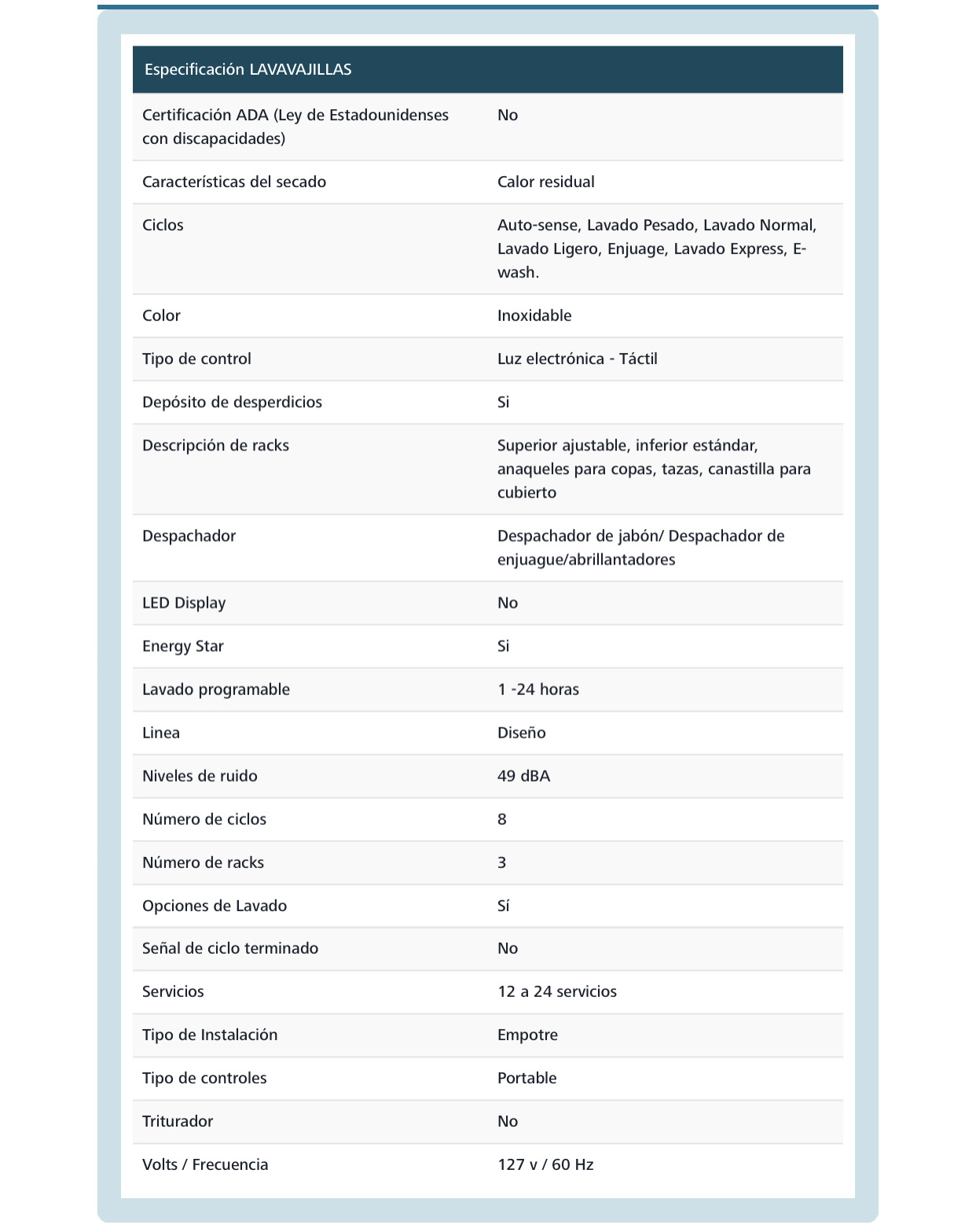 Lavavajillas Empotrable 12 servicios Inoxidable IO MABE - IO1702LI6