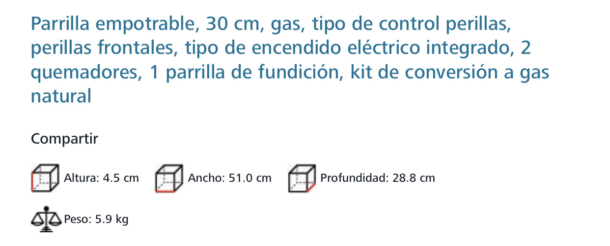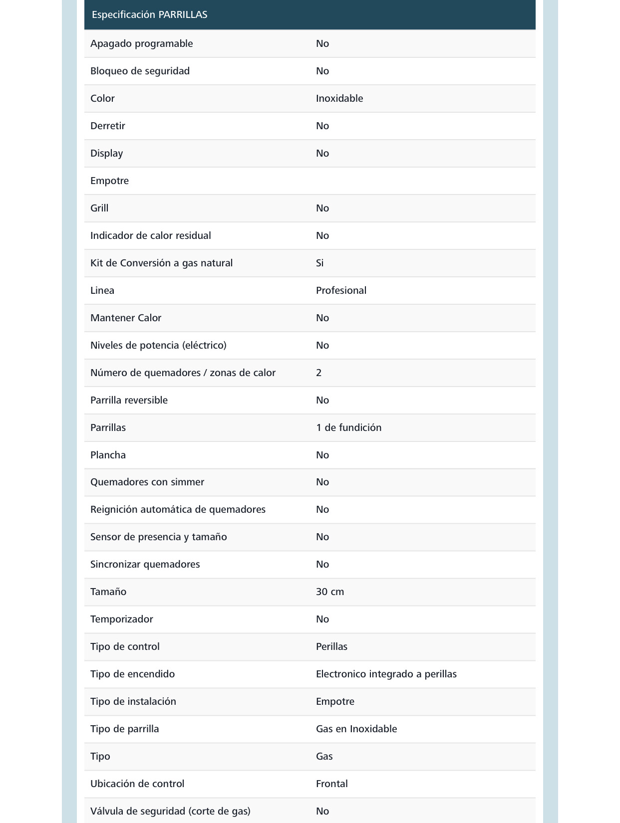 Parrilla a Gas LP 30 cm (12 pulgadas) Inoxidable IO MABE - IO311DGI0