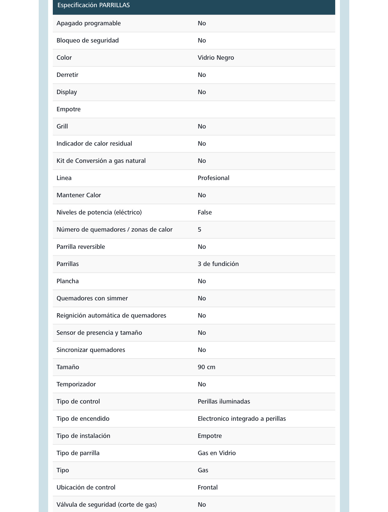 Parrilla a Gas LP 90 cm (35 pulgadas) Vidrio Gris Vulcano IO MABE - IO95BG0;
