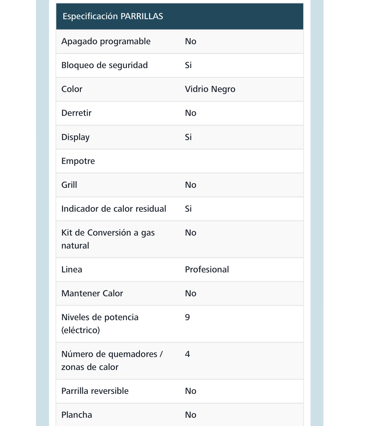 Parrilla Vitrocerámica 220 V 60 cm (24 pulgadas) Vidrio Negro IO MABE- IO614PVI0